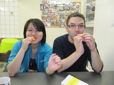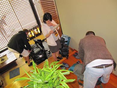 中島屋の玄関から外をみるとこんな感じでした。 それでも、 染物と宿の中島屋の中は元気いっぱいです! フランスと日本のインターナショナルなカップルのお客様は 緑でお揃いの手ぬぐいが完成☆ その後は私も一緒にデザートタイムを楽しませていただきました! 何を食べていたのかと言うと、 この季節限定のビワです! フランス人の彼はビワを食べるのが初めて☆ みんな、おいしさに満足のひと時でした。 そして、翌朝。 なぜかチェックアウトの時間って、 皆さん集中されます。 玄関も荷物の最終チェックで賑やかです(笑) 中にはこんなものがついているお客さんも! みなさん日本の旅を楽しんでくださいね☆ 熊本城の見える安いゲストハウス「染物と宿の中島屋」 PR