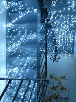 中島屋の館内をウロウロしていると、 もう少しここをどうにかしたいなぁ~。 と、言うところがあるのですが、 今回は! 熊本城の見える屋上へ上がる為の階段です☆ 今まで、 階段にはシャンデリアを下げていたのですが、 その電球をロウソクのように メラメラと燃えているように見える電球に交換してみました☆ 写真では分かりづらいですがメラメラしてます(笑) そして、さらに! 煌びやかに欠けていた階段を、 キラキラいっぱいにすることに! お客様からも「ワーォ!」と好評を頂いております♪ 中には、 「ここはクリスマスのようだ!」とおっしゃる方も(笑) 熊本城を見に行く時に、 階段でも楽しんでいただけると嬉しいです♪ 熊本城の見える安いゲストハウス「染物と宿の中島屋」 |