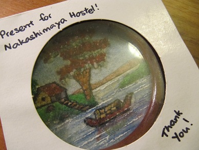 受付に行くと、 チェックアウトされたお客様より、 「中島屋へプレゼント!ありがとう!」 と、書かれた箱が置かれていました☆ 開けてみると、 かわいい宝石画の置物でした♪ 名前も無く、 どこの国の、 どなたからのプレゼントなのかわらないのが残念ですが、 早速、 大切に飾らせて頂きます☆ Thank you !!! 熊本城の見える安いゲストハウス「染物と宿の中島屋」 |