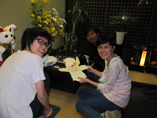 熊本市内でも雪が舞いました☆ ブログ更新もこの寒さで滞りがちですが、 キーボードの指を暖めながら頑張ります! ところで最近、 タイからのお客様が徐々に増えてきているのかな? と、ほのかに感じる今日この頃ですが、 そんな、 南国タイのお客様の中にお誕生日の方がおられ、 中島屋のエントランスで、 仲間の皆さんがサプライズでケーキをプレゼント☆ 本当に知らなかったようで、 ビックリする中央のお客様! ハッピーバースデーソングに参加させていただきました♪ おめでとうございました! 熊本城の見える安いゲストハウス「染物と宿の中島屋」 |