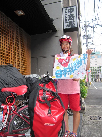 長い休みを使って自転車で日本縦断のお客様が ぞくぞくとお越しいただいております! 今のところ、 鹿児島スタートの方ばかりです☆ おそらく、 夏休み後半は北海道スタートの方が来てくださるはず!(願) そして、 赤い自転車にお手製の旗をなびかせる女性チャリダーさん! 北海道を目指して出発です☆ そして、 ラッキー!?なことに、 熊本市電全線でたった2箇所しかない貴重な踏み切りでストップ☆ 皆さんが無事に日本縦断できますようにと、 熊本から祈っています☆ 頑張ってくださーい! 熊本城の見える安いゲストハウス「染物と宿の中島屋」 |