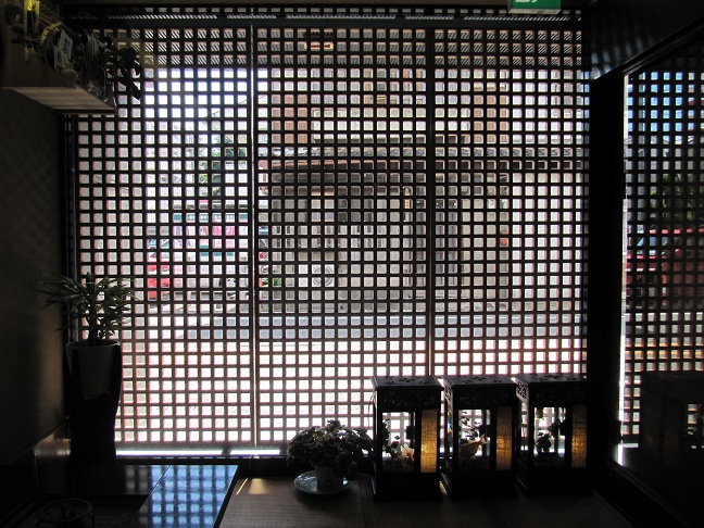 木製の格子で中は見えにくいのですが、 不思議と中から外を見ると良く見えます☆ 時々、 外を歩いている方が、 「中はどうなっているんだろう?」 と、言うことで、 格子の穴から覗きに来られる方がいらっしゃいますが、 玄関で靴を履いている時などに覗かれると、 覗いた方が慌てて去っていかれます。。。 ご覧頂くのは大丈夫なのですが、 中からも見えているんですよ(笑) 熊本城の見える安いゲストハウス「染物と宿の中島屋」 |
