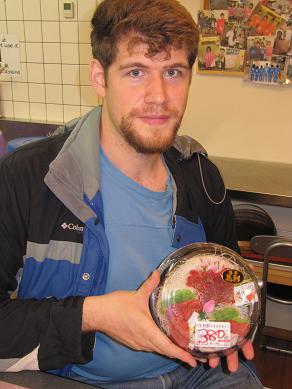 沖縄で英語の先生を4年もされていらっしゃるとのことで日本語ペラペラ! そんな彼がポーズを決めて持っているものがは、 熊本特産の馬刺しです! 中島屋から徒歩1分のところで購入されてきたとのことですが、 さすが、馬刺しの県の熊本です! 一人では多過ぎる程の量で380円☆ 生ものなので夕方には大概値引きされます。 ほとんど皆さん夜にしか食べないので、 割引後で十分なのですが、 売り切れる前に購入しないといけないので、 この見極めがカギですね! お越しの際は色々な熊本のおいしいものを食べてみて下さい☆ 熊本城の見える安いゲストハウス「染物と宿の中島屋」 |