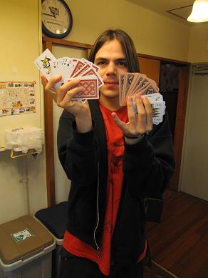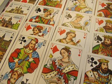 暇つぶし用のトランプをコッソリと配置してあるのですが、 宿泊中のお客様より相談が! 「ジョーカーだけをコレクションしていて、 ここのトランプのジョーカーのデザインが素晴らしく、 どうしても欲しいから、 オランダから持ってきたトランプと交換してほしい!」 と、言うことで、 ゲームさえ出来れば特に気にしないので気軽にOK! 交換した時には気づきませんでしたが、 後からじっくり眺めていると 絵札がなんだか「おかしい」!? 「A」は知っているものの、 「B」?「V」?「H」? 私にとっても、 日本ではちょっと珍しいトランプになって嬉しい出来事でした(笑) 熊本城の見える安いゲストハウス「染物と宿の中島屋」 |