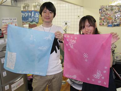 正式には熊本は宣言が出されておりませんが、 染物と宿の中島屋が梅雨明けを宣言します(笑) そんな中、 東京発 ⇒ 沖縄 ⇒ 北海道 ⇒ 東京で 日本一周をされているさわやかなお客様です! これからの季節はチャリダーさんには過酷です。 水分をたくさん持って頑張ってください☆ 続きまして、 雨の日のアトラクションとして 染物体験をチョイスしていただいたこちらのお客様! カワイイハンカチの出来上がりです☆ さて! ラストは夜遅くまで、 染物Tシャツを作っていただいたこちらのお二人☆ 染物の時間と言うよりも楽しいトークで深夜に突入してしまったと思います(笑) アメリカからのお客様は翌朝に早速着用いただいての出発です☆ 皆さん本当にありがとうございました☆ 夏バテしないように頑張りましょう! でも、暑いぃ~。 熊本城の見える安いゲストハウス「染物と宿の中島屋」 |