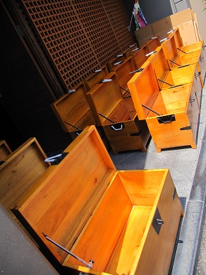 道行く人から 「これは千両箱ですか?」 残念ながら千両箱ではありませんが、 お客様用の収納BOXです☆ 天気もよかったので天日干し中! 目立ちすぎたのか、通行人が足を止めるだけでなく、 通る車も一旦停止して見ていかれます。 危うく、箱屋さんになってしまうところでした☆ 熊本城の見える安いゲストハウス「染物と宿の中島屋」 |