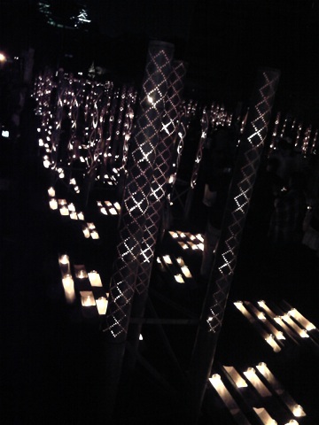 「みずあかり」が昨日、今日と開催されました☆ 5万4千本のろうそくが 穴を開けた竹の中で輝きます☆ 残念ながら、 携帯電話での撮影の為、 画質が悪く申しわけありません。 ちなみに、 後ろに小さく写っているのは熊本城です! 暗いので分かりづらいかもしれませんが、 ものすごい人出で大賑わいです☆ 私の毎年楽しみなお祭りのひとつです! 綺麗な写真は「みずあかり公式ホームページ」にてお楽しみください。 http://mizuakari.net/pc/ 熊本城の見える安いゲストハウス「染物と宿の中島屋」 PR
