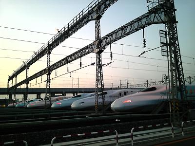 熊本=大阪間が2時間59分で結ばれるそうです。 速いですね! そして、熊本には九州で唯一、 全国でも他に3箇所しかない新幹線の基地が設けられています。 先日、買出しの時にその新幹線基地の横を通過したので 写メを撮ってみました。 新型新幹線「さくら」がなんとズラリ7台! なかなかの圧巻です!!! そんな九州新幹線前線開業を祝うイベントとして、 今月の20日にカメラを搭載した新幹線に向かって、 沿線250kmをみんなでウェーブして、 その映像が今後のテレビCMやポスターなどで使われると言う、 壮大なプロジェクトが進んでおります☆ CM出演したい方はこちらのオフィシャルホームページをご覧ください☆ http://www.shuku9.com/ 新幹線の開通後が楽しみです! 熊本城の見える安いゲストハウス「染物と宿の中島屋」 PR