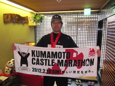 02/19/18:13 第1回 熊本城マラソン本日は、 1万人の募集がたった15分で定員に達したと言う 第1回 熊本城マラソンの開催日でした! 染物と宿の中島屋の近辺は フルマラソンのゴール目前ポイント! ランナーの皆さんの表情にもほとんど余裕がなくなっている頃です。 とにかくたくさんのランナーでビックリです! 中でも目を楽しませてくれるのが、 仮装ランナーの皆さん☆ パンダが来たかと思ったら、 サルも駆け抜けます! カラフルアフロに妖精さん! そしてお次はスーパーマリオ! そして、 なんと言っても、 ここは熊本! とにかくランナーの多くに「くまモン」が目立ちます☆ あと、 たぶん、 これもくまモンでしょう。。。 そして、そして! 最後になりましたが、 染物と宿の中島屋にご宿泊いただいていたランナーの皆さんも 多く走られていらっしゃいました! 全員ではございませんが、 走られた後、 ご報告にお越しいただいた皆さんをご紹介いたします☆ 皆さん本当にお疲れ様でした!!! それでは皆さんまた来年☆ ちなみに、 号外まで配布されるお祭り騒ぎとなった熊本でした! 詳しい記事はhttp://kumanichi.com/pdf/20120219_2.pdf 熊本城の見える安いゲストハウス「染物と宿の中島屋」 PR
