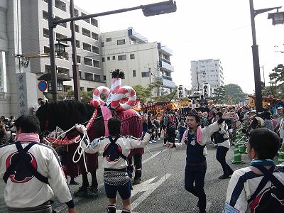 早朝から、各団体が飾り馬を筆頭に藤崎八幡宮を出発です!