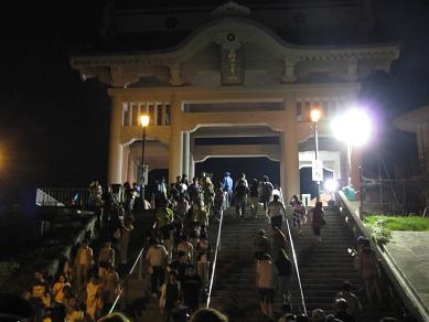 頓写会に行って来ました! 延々と続く屋台とたくさんのお客さんで 会場となる本妙寺は熱気ムンムン☆ 夏祭りムード一色の参道を進むと、 ようやく門まで到着☆ ちなみに、 頓写会は熊本城を築城した城主の加藤清正の為に 夜通し写経とお経を唱え続けると言う、 お上人さんにとっては過酷な一日だと思います。 たくさんの行灯に囲まれたお寺の中では 一般人も一文字写経に参加することも出来ます! 簡単な字?難しい字? どんな文字が割り当てられるかはわかりません☆ 加藤清正もライトアップされて輝いていました☆ 途中には昔ながらの休息所もあるのですが、 たくさんの人がくつろいでいい雰囲気です☆ 沿道の無数の石灯篭にも火が入り 幻想的な祭りの夜を照らします。 これからもイベントが目白押しなので、 楽しみな熊本です☆ 熊本城の見える安いゲストハウス「染物と宿の中島屋」 PR