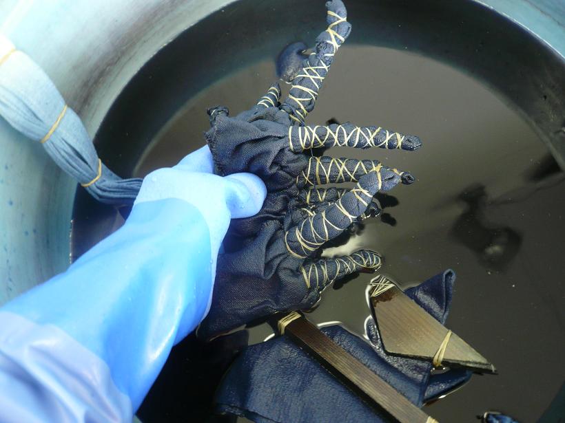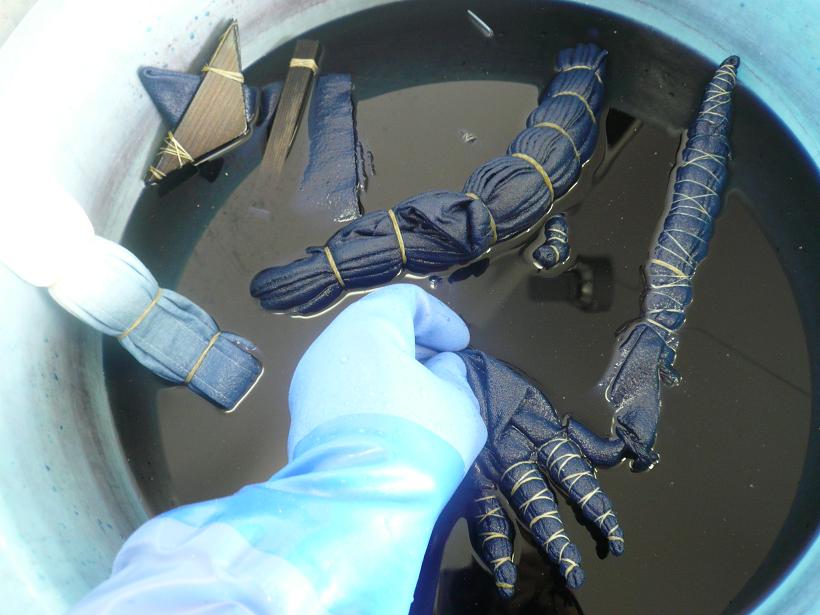 このような感じで、ジャブジャブします☆(絞り染め、鋏染)