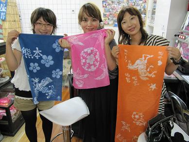 いよいよ、 芸術の秋到来です! 染物と宿の中島屋でも芸術作品がたくさん染め上がっております! 女性作家さん一人旅のカワイイいちごの手ぬぐいです☆ お次は二枚染め! 一枚はお母さんの誕生日プレゼントにされるそうです☆ こちらは職場のお仲間☆ 敬老の日と言うことで、 お洒落で元気なおばあちゃんもご一緒にお越しいただきました! こちらは完全フリーハンドの作品です! お色もご希望通りの薄いピンクにし仕上がりました☆ さてさて! 以前の職場の同僚さんがプレゼント用にと、 Tシャツを染めに来ていただきました! 久しぶりに懐かしい話をさせていただきました(笑) 会社の同期の皆さんでの染物体験☆ 全国の支店で働いていらっしゃるとのことで、 日ごろは皆さんバラバラ遠いところお住まいだそうです。 終始賑やかな染物体験でした(笑) 毎年色々なところへ旅行されていらっしゃるというお母さんとお嬢さんです☆ 上品でありながら、 仲良しなお二人でした! 皆さま染物体験を楽しんでいただき 本当にありがとうございました☆ 熊本城の見える安いゲストハウス「染物と宿の中島屋」 PR