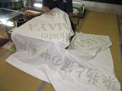大きなのれんを、時間がある時に、ちょこちょこと製作しておりました☆