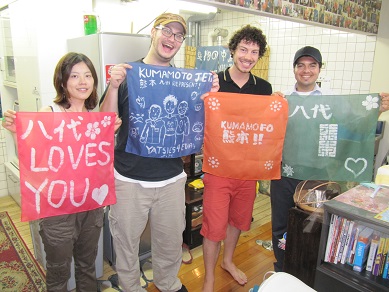 サプライズな染物体験がありました! 熊本で英語の先生をされている皆さんのご利用で、 みんな楽しく完成です☆ ところが! これにはもっと深い訳があったのです! 赤いズボンの彼が近日帰国されるとの事で、 実は、 彼には内緒でみんなはプレゼントを作っていたのです! それを知った時は 「わぁーぉ!」 あまりの嬉しさに恥ずかしくなって 顔を隠してしまいました(笑) 素敵な友達に囲まれてとっても幸せですね♪ また、 熊本へ遊びに来てくださいね☆ 熊本城の見える安いゲストハウス「染物と宿の中島屋」 PR