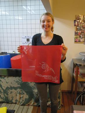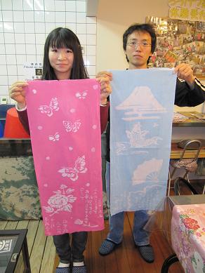 目的がある方が比較的多いようです☆ まずは、 ドイツからお越しの日本語ペラペラのお客様! 芸術を勉強されておられ、 「絶対に染物をしたい!」 と、言うことで染物体験☆ この作品はお母さんへのプレゼントにされるそうで、 「多少失敗しても、娘からの手作りプレゼントは嬉しいものよ☆」 と、親心を見透かしておられました(笑) お次は、 熊本にお住まいのリピーターさんで、 歌舞伎好きなおじいちゃんの誕生日プレゼントにされるそうです☆ しっかり歌舞伎の隈取りも入っています! 最後に、 結婚式まで1週間を切ったカップルさんです! 結婚式のクライマックスの両親へのプレゼントを、 メッセージ入りの手ぬぐいにして染め上げられました☆ どの作品も本当に心をこめて製作されていらっしゃったのが印象的です。 皆さんもHappyな染物体験いかがですか☆ 熊本城の見える安いゲストハウス「染物と宿の中島屋」 PR