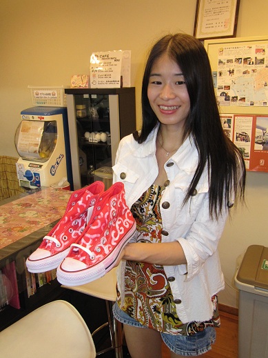 なんとも華やかなお仕事の同僚の皆さま☆ カラフルなハンカチが染まりました☆ そしてお次は、 真っ赤なオリジナルスニーカーを完成されたお客様☆ 最後は、 サンタクロースのようなお髭が印象的なご家族☆ 手ぬぐいもバッチリです! 夏真っ盛りです! 皆さん、夏休みを楽しみましょう!!! 熊本城の見える安いゲストハウス「染物と宿の中島屋」 PR