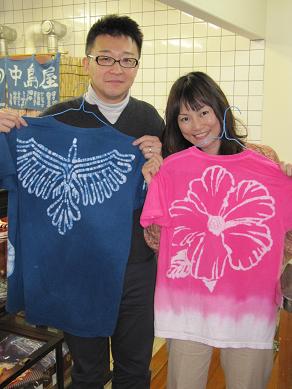 染物と宿の中島屋では熱い染物作品が染め上がっております☆ まずは、リピーターのお客様! 前回はお友達と染物体験をされたのですが、 楽しかった! と、言うことで今回は結婚記念日旅行でご主人と一緒です☆ しかも、オリジナルデザインを持参でTシャツを作られました! お次もリピーターさんで、 地元のアーティストさんでもあります! 今回は、大きな生地を持ち込みで制作です。 展示会での作品ディスプレイ用に使用されるそうです☆ 今度、見に行きますね! そして、「日本」と書いたハンカチを持っていらっしゃるのは、 オーストラリアからのお客様☆ 続きまして、 珍しい光景が。 ひとつの作品を2人掛かりで仕上げています(笑) そして完成! みなさん! 楽しい染物体験の時間をありがとうございました☆ 熊本城の見える安いゲストハウス「染物と宿の中島屋」 PR