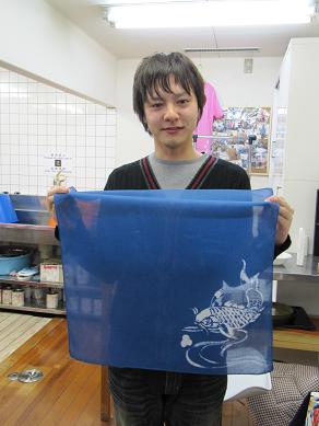 すばらしい作品が生まれております! まずは、北海道で英語の先生をしている姉妹のような二人組みですがお友達です。 シンプルですが、インパクトのある仕上がりです☆ 続きまして、 自分で前髪をバリカンで刈り上げ、 奇抜なヘアスタイルで楽しませてくれた彼女は、 日本で5年も幼稚園の先生をされているベテランさんです! 鳥居に桜を散りばめたかわいいピンクのTシャツです☆ 最後は、ハーフのような日本人です! イケメンでとってもやさしい! 言うことなしの彼は優雅に泳ぐ鯉のハンカチです☆ 皆さん、楽しい時間をありがとうございました! 熊本城の見える安いゲストハウス「染物と宿の中島屋」 PR