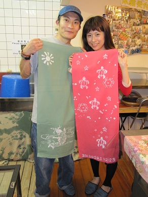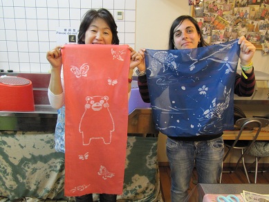 夜は涼しい今日この頃のこの季節が1年の半分くらいだったらいいなぁ。 と、叶わぬ夢を願っておりますが(笑) 染物体験にてお客様も素敵な作品が染め上がっております☆ まずは、仲良しなお二人様のアートを感じる手ぬぐい! 以前、 アフリカでワイルドなろうけつ染めを体験されたことのある、 ワイルドなお二人☆ アフリカのデザインの足跡が最高です!!! お次のお客様はこだわりの純和風手ぬぐいを染め上げられました☆ そして、そして、 ドイツからのお客様と一緒にお越しのお客様☆ 染物体験が終了と同時にドイツへインターネットを繋いでお仕事スタート! Web専門のお客様相談室のオペレーターをされているそうですが、 世界を旅行しながら出来る仕事って予算も尽きること無くスゴイですね! 問い合わせした人は日本から答えているとは想像もしませんよね(笑) 今度の方もスゴイ方です! 若い頃からの自転車乗りで、 今回は日本最南端から最北端まで自転車の旅です! そして、 今回の旅Tシャツを染めて出発です! 最後になりましたが、 日本語100%OKの中国からのお客様☆ 由布院での旅館宿泊予定を1泊短縮してまでお越しいただきました。 恐縮です。 ありがとうございます! 皆様本当にありがとうございました! 良い旅を! 熊本城の見える安いゲストハウス「染物と宿の中島屋」 PR