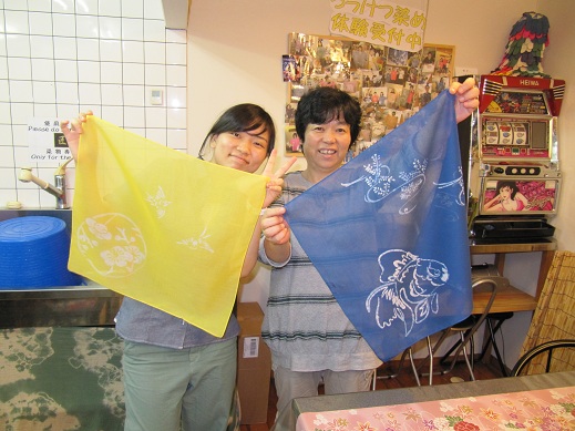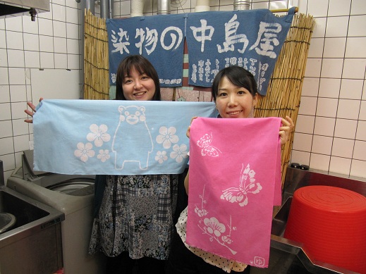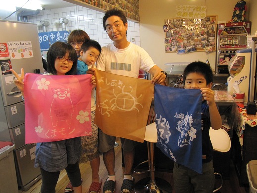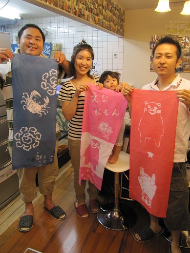 中島屋はお休みではありません! 今年の夏休みは本当に染物体験が大好評なんです☆ 夏休みを利用してご職場のお友達と! もちろん、海外からのお客様も! 県外からファミリーで☆ ハンカチに賑やかにデザインも舞います☆ 手ぬぐいもジャジャーんと完成☆ そして、親子水入らずの染物体験! お次は染物体験リピーターさん! 手ぬぐいの棚が自宅に必要になるほどのコレクター☆ どうしても染物体験がしたい!と、 熱望頂き、 深夜までかかりましたが完成! 休みの度に熊本にお越しになっているという、 熊本大好きのお二人☆ 本当に沢山のお客様に楽しんでいただいております! また、明日からも、 朝昼晩と染物三昧の日々を頑張ります☆ あと、 スペースには限りがございますので、 染物体験をご希望のお客様はできれば事前にお電話ください! 熊本城の見える安いゲストハウス「染物と宿の中島屋」 PR