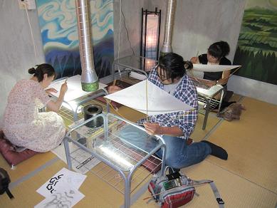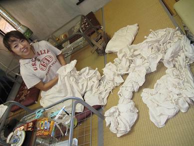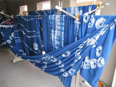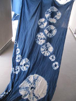 以前、染物と宿の中島屋にお泊り頂きましたアーティストのお客様が、 今月の19日から北九州空港で海をテーマとした 個展「夢鯨」を開催されます! そそて、その、個展会場を海にしたい!との事で、 染物で海を再現するべく、 泊り込みで20メートルの大作を製作されにお越し頂きました! 2日目はお友達も染物に興味を持っていただき、ろうけつ染め体験☆ 海色に染めるのも、染物専用シンクをフルに使いました! そして、そして、絞り染めで、 海の波や、クラゲをデザインされた巨大な作品が染め上がりました☆ 初めての絞り染めとは思えないほどの完成度! さすが、アーティストさんは生まれ持ったセンスが違いますね☆