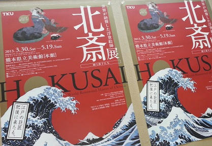 日本中が活気に包まれている今日この頃ですが、 仕事の合間を見て、 熊本県立美術館へ行ってきました! 何を見に来たかと言うと、 「北斎展―世界が絶賛した浮世絵師―」 ゆっくり回る時間はありませんでしたが、 本物の浮世絵はよかったです♪ 5月19日まで開催されておりますので、 熊本城内にある熊本県立美術館へも 足を運んでみてはいかがでしょうか? 熊本県立美術館公式HP 「北斎展―世界が絶賛した浮世絵師―」 http://www.museum.pref.kumamoto.jp/event_cal/pub/Detail.aspx?c_id=10&id=19&type=top&trk_kbn=N 熊本城の見える安いゲストハウス「染物と宿の中島屋」 |