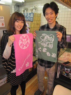 染物と宿の中島屋では もちろん、 染物体験も健在です☆ まずは、 「くまもと」がデザインされたお二人の手ぬぐいです! そして、 海外のお客様も鶴と絞り柄の手ぬぐいです! こちらのお客様も セットで商品になってもおかしくない程のクオリティー! 「熊本 中島屋」を入れていただき大感謝です! そして、そして、 阿蘇のゲストハウス「阿蘇び心」さんより、 新スタッフさんが頭に巻く手ぬぐいを制作に わざわざお越しいただきました! 本当に皆様ありがとうございました☆ 熊本城の見える安いゲストハウス「染物と宿の中島屋」 |