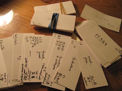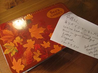 JRの列車内に忘れ物をされる事が連続してありました。 一人目の方は、デジタルカメラを忘れてしまったとショックを受けておられましたが、 無事に、忘れ物預かり所に届いているとの連絡が入り、大喜び☆ 「フランスでは、忘れ物は絶対に帰ってこないけど、 日本は素晴らしい!」と、大喜び☆ そして、もう一方は、アメリカからの年配のご夫婦で、 同じく列車内に小さな紙を入れたビニール袋を忘れてしまったとのこと。 「たぶん、ゴミと思って捨てられているかもしれない。」と言うことだったので、 問い合わせてみると、ちゃんと保管してありました☆ 早速、熊本駅に取りに行ってきました。 中にはたくさんの日本語を勉強する為の単語帳! そう言えば、70歳を過ぎているご主人がカタコトで日本語を使われておられた! 帰ってこられて、お客様に見せていただきました☆ 何気に使っている日本語も海外の方には難しい事を改めて感じました。 たとえば、「行きます」 裏側には 「to go」 「to do」 ただ、同じ「行」でも音読み、訓読み、ふり仮名を使い分けるのは難しい…。 「銀行」や「一行」の「行」なんて、「to go」 「to do」には当てはまらないですよね。 そんなたくさんの日本語を70歳過ぎの方が一生懸命勉強されているのを見ると、 日本ってすごく魅力的なんだなぁ。と感じます☆ その夜は、お客様のリクエストにより、 くまもとナイトツアーへ行ってきました! そして、チェックアウトの朝はお見送りをしようと思っていたのですが、 早朝出発だったようで、いつの間にか旅立たれておられました。(残念) すると、受付カウンターにひとつの素敵な箱と置手紙が。 勉強している日本語と英語で、温かいメッセージ! そして、箱を開けてみると、 バラエティーにとんだアメリカからのチョコレート☆ 胸が熱くなるほど感激の朝となりました。 やっぱり、この仕事をはじめてよかったぁー! 私の老後はこのご夫婦を見習わせていただきたいと思います☆ 熊本城の見える安いゲストハウス「染物と宿の中島屋」 PR