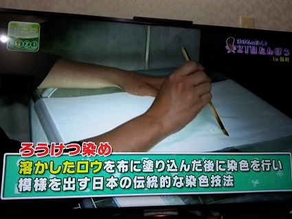 このブログにて テレビ取材のご報告をさせていただいておりましたが、 その時のもようを放送していただきました! まずは外観から褒めていただき~♪ リポーターの皆さんとご対面! お宿のご紹介から~、 染物体験の詳細まで☆ そして、 今回体験いただいた ろうけつ染めの丁寧なご説明! 皆さん真剣に制作です!!! 絵付けが終わると染色です そこで!!! 熊本屈指のオネェタレントのまさるさんより 下ネタ攻撃を受けてしまいました♪ 色が入ったら熱湯で洗います! 皆さん完成でーす! 大変楽しい撮影でした! ご覧いただきました皆さま ありがとうございました! そして、 テレビ局の皆さまもありがとうございました☆ 熊本城の見える安いゲストハウス「染物と宿の中島屋」 PR