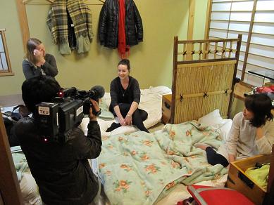 TKUテレビ熊本さんより、 染物と宿の中島屋の夜に日常の撮影にお越しいただきました☆ まずはタイのお医者さんのお客様☆ タイ語の日本ガイドブックに中島屋がオススメしてあったのでご宿泊~! 他にも布団の上で、 ニュージーランド、香港、オーストラリアの皆さんにもインタビュー(笑) また後日も撮影があるとのことで、 放送日は全ての撮影が終了してから教えてもらえそうです☆ その時はまたご連絡させていただきます! 夜遅くまで撮影にお越し頂きありがとうございました! 熊本城の見える安いゲストハウス「染物と宿の中島屋」 PR
