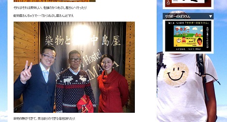 よしもとの芸人さんの 清水圭さんが染物と宿の中島屋に突撃取材です! 気さくに何でも話して頂き楽しい時間でした☆ そして、 なんと、清水圭さんのブログにも掲載いただき ありがたいかぎりです!!! 清水圭 オフィシャルサイト http://www.k432.net/k-journal/%e3%81%a8%e3%81%ab%e3%81%8b%e3%81%8f%e3%80%8c%e3%81%8f%e3%81%be%e3%83%a2%e3%83%b3%e3%80%8d%e3%81%a0%e3%82%89%e3%81%91%e3%81%a9%e3%81%99/33407/ なお、 今回収録された番組の放送は、 福岡のテレビ局TVQさん きらり九州めぐり逢い H27年2月21日(土)20時~20時54分 放送圏内の方は お恥ずかしいですがご覧下さい♪ 最後になりましたが、 取材にお越しいただきましたスタッフの皆様、 貴重な体験をさせていただき、 本当にありがとうございました! 熊本城の見える安いゲストハウス「染物と宿の中島屋」 PR