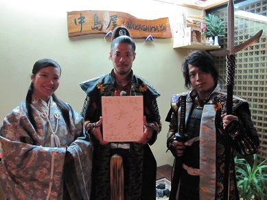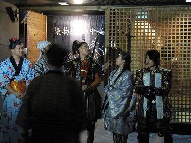 11/12/18:15 芸人さんと時代を超えて武将隊!なにやら中島屋の前が江戸時代になってしまったかのような