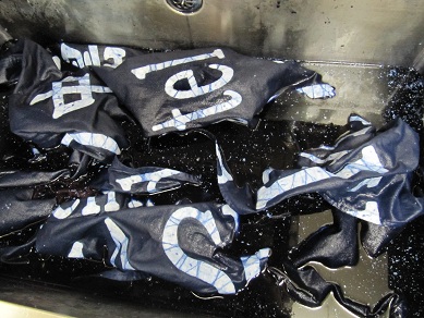 前回、 洗濯をしてキレイになった暖簾でしたが、 日焼けにより、 表と裏ではこんなにも色が違っています。 と、言うことで、 染め直すことに!!! かなりの時間、 染物工房に引きこもり、 中島屋の暖簾はロウケツ染めなので、 熱したロウで文字を表面と裏面に塗ります☆ この防染作業が終わると、 染色スタートです! ムラにならないようにジャブジャブすること1時間♪ その後、 熱湯で洗ったりと仕上げをすると、 鮮やかさが復活です!!! これで、 紺屋の白袴ならぬ、 中島屋の白暖簾にならずに済みました☆ 熊本城の見える安いゲストハウス「染物と宿の中島屋」 PR