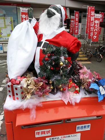 とっても便利な24時間営業の熊本中央郵便局があります! この郵便局は、 手まり歌の「あんたがたどこさ」の舞台となっている「せんば」なので、 ポストの上には「せんば狸」が乗っております☆ 季節に合ったコスチュームに着替えて楽しませてくれます♪ 年賀状の受付が開始された今は、 年賀はがきのノボリがはためく中、 一人でサンタクロース姿で頑張っています!(笑) クリスマスなのか、 年賀状なのか統一感のないポストになっていますが、 どちらにも赤色ってマッチしますね☆ あと、 鼻髭のはずが、 鼻の上に髭がきているのが気になりますが、 狸のコスプレを毎回楽しみにしています☆ 熊本城の見える安いゲストハウス「染物と宿の中島屋」 PR