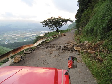 めでたく中岳噴火口立入規制解除の阿蘇山へ! いつもお世話になっている方々にご挨拶をして、 今回はバッテリーの充電も兼ねて、 中島屋の宣伝カーの赤い車でドライブです! そして、 ドライブコースはと言うと、 現在はほとんど使用されていない隠れた絶景ロード☆ その為、 先日の大雨で落石や道路も崩壊寸前。 慎重に無事通過☆ 途中には絶景ポイントが数多くあります! ちょっとはしゃいで飛んでしまいました(笑) そして、 こんな道も!!! カーブと言うよりUターン? 上から見るとこんな感じです! この道は密かに「天空の道」と呼ばれているそうで、 まさに空をドライブしているかのようです! 熊本には良い所が満載ですね! 日本、いや、世界に誇れる場所です☆ 目指せ!世界一!(なにが?(笑)) ちなみに左上に立っているのが私です☆ 熊本城の見える安いゲストハウス「染物と宿の中島屋」 PR