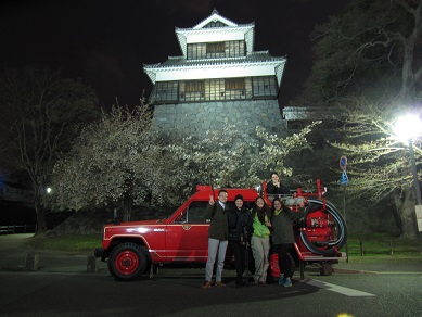 熊本の桜の開花が宣言されました! と、言うことで、 夜桜ツアーお客様と一緒に行ってきました! 今夜は特別に中島屋専用の消防車で出動です! そして! 桜も咲いています♪♪♪ そして、 熊本城も相変わらずカッコいいです! 夜の城も散策して満喫です☆ 最後はみんなで記念撮影! 桜もまだまだこれからが本番なので楽しみですね! 楽しい夜桜ツアーとなりました。 熊本城の見える安いゲストハウス「染物と宿の中島屋」 |