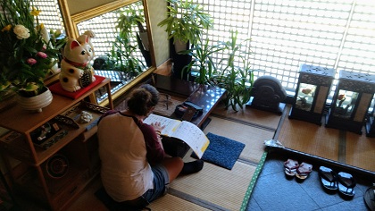 05/24/17:38 朝の光で日本語の勉強!染物と宿の中島屋の朝!