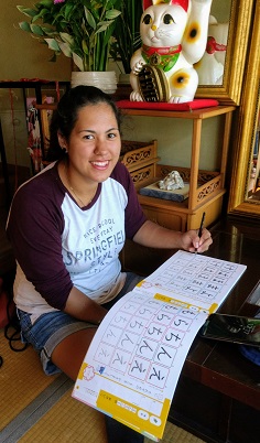 エントランスで何かしら作業をされているお客さま。 なんと、 外から差し込む朝の光で日本語を勉強中☆ ブラジルからのお客さまで、 ひらがなを練習されてました (*^▽^*) 海外旅行先で その国の言葉を勉強するって、 素敵な時間ですね ♪ きっと、 覚えも早いことでしょう! そんな旅もしてみたいですね☆ 熊本城の見える女性専用のゲストハウス「染物と宿の中島屋」ホームページ |