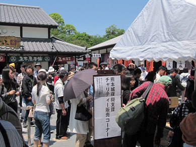 2016/4/29撮影 一部2016/5/1撮影 規制線の外側からの見学は一般の方にも公開されています。 このような姿の熊本城はもう見ることができないと思います。 これも熊本城の歴史の中で大きな出来事だと思います。 見ることが可能な方は実際に見て記憶に残してみてはいかがでしょう。 また、 熊本城内の城彩苑も開園しました。 熊本は各所被害はありますが、 そんな中、 ゴールデンウイークに合わせ 観光関連施設、レストラン、商業施設など、 熊本市内は元気に営業を始めているところが多くあります! 是非、 熊本へ来て、 見て、 営業しているところを利用してください! そして、 平常な熊本になった時に、 もう一度お越しいただけると嬉しく思います。 城彩苑も通常営業始まりました! 熊本城復興支援 チャリティー販売コーナーには多くのお客様も! 今の熊本も 是非、 見に来てください! 熊本城の見える安いゲストハウス「染物と宿の中島屋」 |