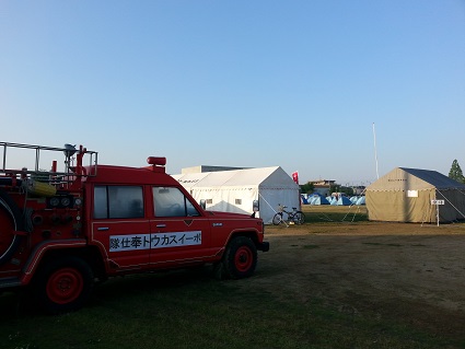 中島屋は自家用の消防車を所有しております。 普段はお客さんに乗ってもらったり~♪ そして、 緊急事態の熊本地震に伴い、 本領発揮です! 早速ガソリン満タン! 試運転チェック! 今回は全国からボーイスカウトの皆さんが復興支援のために ボランティア集まっていただけると言うことですので、 本部車両としてご提供します☆ ボーイスカウト奉仕隊仕様に! 夜になってしまいましたが現場へお届け! 自衛隊さんの災害派遣のトラックと一緒に、 予定では8月くらいまでは活動されるとのことですので 活躍してくれることでしょう! 熊本城の見える安いゲストハウス「染物と宿の中島屋」 |
