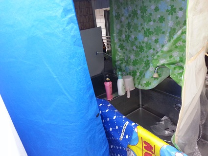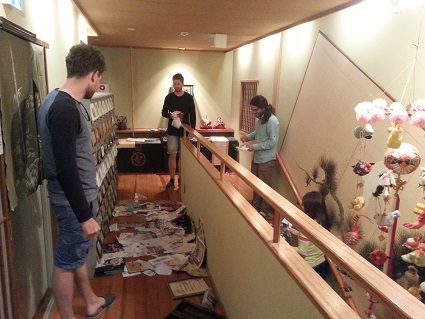 まずは、 ご宿泊いただいていたお客様を熊本から脱出していただくべく 情報収集するのですが、 あらゆる交通手段が全面ストップ。。。 そんな中、 奇跡的に福岡行のバスがでるかもと言う情報が! イチかバチかで皆さん乗りました! その後、 すぐに全面ストップ。 皆さん乗れて助かりました。 さて! 中島屋では、 国旗の先のゴールデンボールに黒い布を被せ、 弔旗を掲揚し、 片付け作業開始! 談話室も本棚のガラス戸の破片が飛び散り厄介な状態に。 尻込みしていても始まらない! さあ! 片付けるぞ! ん? お客様は全員熊本から退避したはずなのに フランスからの女性が1名!!! そうなのです! 本震後、 唯一彼女だけが片付けを手伝うと残ってくれたのです(感激) ガラスの破片集めから、 力仕事まで何でも笑顔で助けてくれました! 余震も多いのですが、 揺れるたびに笑顔で 『だいじょうぶ、だいじょうぶ』が、 彼女の口癖に(笑) しかも、 本震の日が彼女の誕生日と言うことが判明!!! 夜はキャンドル1本の ささやかなバースデーパーティーでお祝いしました☆ 翌日は、 近隣の公共機関は避難所となり、 多くの人が集まっています。 中島屋では、 お客様用にストックしてある 歯ブラシ1500本やお菓子など全部お届けに! ガラスなどの危険な掃除も完了したので、 自宅が危険な状態で帰宅困難な方へ客室を開放し、 子供からご年配な方まで、 多い時で30人を超え、 貴重な物資を頼りに過ごしました。 とは言え、 この地域もライフラインがストップし、 中島屋でも数日後にようやく水がチョロチョロ出始めました! 実はその間、 お風呂に入ることが皆さんできていませんでした。 熊本市近隣の温泉地が無料開放の情報もありましたが、 多くの被災された方が集中してしまい、 国道が大大大渋滞で温泉地にすら近づけない状況。。。 中島屋の2階にあるシャワールームの蛇口をひねっても まだまだ水圧が弱く1滴もお湯どころか水もでません。 それならば風呂を作ろう!!! 中島屋は染物をする染め場が1階にあるのです! ガスは止まっていますが、 染物用のボイラーは正常に作動しお湯が作れる♪ 染物用のシンクにお湯を貯め、 桶やレジャーシートを駆使して 簡易かかり湯ができる場所が完成♪ また、 いつまでたっても断水や低水圧は解消されなかった為 活躍の期間は思いのほか長かったです。 簡易的に作ったものの、 自分で言うのもなんですが、 快適に汗が流せました☆ そして、 いよいよ、 本震から4日間一緒に避難し、 片付け、帰宅困難な方の受け入れなど 一番大変だった時を助けてくれたフランスからのお客様が 当初の予定通りチェックアウトする日が来ました。 ご本人は 『私が居て邪魔じゃなければ、いつまでも手伝う』 と、言ってくれる超良い人なのですが、 せっかく観光で日本に来ていただいている貴重な時間ですので、 何としてでも旅立っていただきたい! と、言うことで、 未だ交通網がマヒしていましたが、 情報では熊本県南部まで行けば高速バスやJRが動いているらしい。 との情報に望みをかけて鹿児島方面へ! 早朝から出発したは良いものの、 予想通りの大渋滞。 自衛隊などの災害支援車両も多く目にしました。 情報では動いていると聞いていた 高速バスやJRも現地に行くと、 全線不通で再開の目途は立ちません。 とのお答え。。。 結局、 県境を越え、 鹿児島県に入り、 何とかJRが動いている駅まで到着し、 鹿児島行に乗ってもらえました! これからは楽しい日本の旅行となりますように願っています☆ もちろん、 帰りも大渋滞でした(笑) --------------------------------------------------- 余震が1000回を超え、 これからもしばらくは非日常的な日々かもしれませんが、 多くの方々に支えていただきました。 物資を地震直後から届けてくれた皆様 お見舞いのメッセージ、心配してくださった皆様、などなど こちらに書ききれないほど助けていただきました。 感謝の気持ちでいっぱいです。 本当にありがとうございました。 熊本城の見える安いゲストハウス「染物と宿の中島屋」 PR