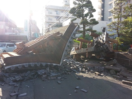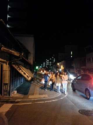 熊本地震は前震の後にさらに大きな本震に襲われました。 中島屋では、 前震の復旧を完了した矢先の本震で、 さらにひどい状況となりました。 本震直後は停電になり、 館内は無音で非常灯のみが点いていました。 館内もぐちゃぐちゃです。 ほぼ、満室状態の中島屋にお泊りのお客さんと、 全員で近くの小学校へ避難することに! 深夜の道は倒壊したガレキの上を歩きました。 半分以上海外からのお客様でしたので、 皆さん、不安でいっぱいかと思いきや、 思いのほか、皆さん冷静で逆に励まされたりもしました。 ある程度、 避難所で過ごし、 帰宿希望の方と、 避難所に残りたい方、 スタッフも2組に分かれて対応しました。 日が昇ると、 近所の被害も甚大でした。 幸いにも中島屋の建物には大きな被害はありませんでした。 倒れていた自宅のテレビをつけると もうダメのようです。 その後、 帰宅困難な方を少しでも早く受け入れられるように、 急いで片付けを始めるのですが! 続きは後日へ 熊本城の見える安いゲストハウス「染物と宿の中島屋」 |