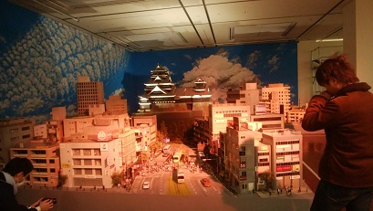 そんな日は熊本市現代美術館へ! 現在『 熊本城 ✖ 特撮美術 』が開催中です! ゴジラなどを手掛けた監督による本格的な 特撮技術による熊本城と街並みが再現されています! しかも、好きなところから撮影もOK! 洗濯物など細部まで ひとつ一つ丁寧に作りこまれており じっくり見ると楽しいです☆ 繁華街にも人が沢山で、 よくよく見ると、 街を歩いている人の中に知り合いを発見! 熊本の人を本当に配置されているのには驚きました☆ また、 定期的に照明の演出が変わり、 夕暮れの熊本に切り替わります 実は、 ただ周りから撮影するだけではありません! 熊本城や街の間には通路があり、 ミニチュアの中に入って撮影もできるので 巨人になったような写真も撮れます ♪ 間近で見ても細部までよくできており見ごたえ満点! 他にも、 完成までの制作風景や 部品の展示などもあり 大変な作業だったことがよくわかります。 現代の街並みだけではありません! 武家屋敷が並ぶ昔の熊本城下町の模型もあり、 染物と宿の中島屋上空から熊本城方面を眺めた 写真を撮影してみました(笑) 地震により熊本城と同じく 大きな被害があり現在修復中の阿蘇神社の楼門も 忠実に再現されてました☆ 熊本市現代美術館にて3月18日までですので 足を運ばれてみてください☆ 熊本市現代美術館公式サイトhttp://www.camk.or.jp/ 熊本城の見える女性専用のゲストハウス「染物と宿の中島屋」ホームページ |